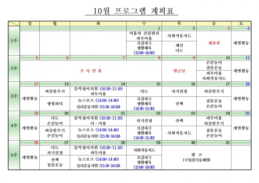 25년 10월 월간프로그램 계획표 페이지 정보 작성자 박제옥 작성일25-10-01 01:22 조회51회 댓글0건 관련링크 다음글 목록 답변 본문 월간프로그램 계획표 다음글 목록 답변